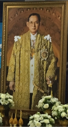 さて、ホテルに着くと、ロビーの一角には国王の遺影が飾られていて、その前でタイ人の宿泊客が弔意を記帳しています。部屋に入ると、宿泊客宛のメッセージが置かれていたので、なんのこっちゃ、と見てみると「10月14日から30日間は国を挙げての服喪期間となるため、祝宴や慶事の催し物はすべて延期となります」と書いている。う~ん、まあそらそうかな~と思いながら、パソコンをネットに接続し、次の出張のスケジュールを調べようとタイ航空のウエブサイトを開くと、いつもはカラフルな表示が、国王の遺影を掲示するとともにモノクロに変更されていて、あら~なるほどな~、ここまでやるのか、と。
